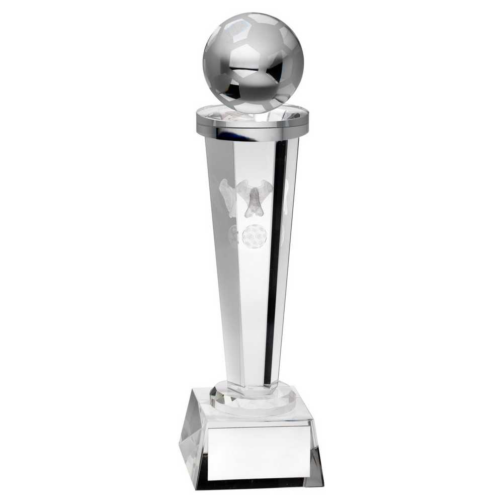 CLEAR GLASS COLUMN WITH LASERED FOOTBALL IMAGE WITH PLATE - 10in. Free engraving on the supplied plate