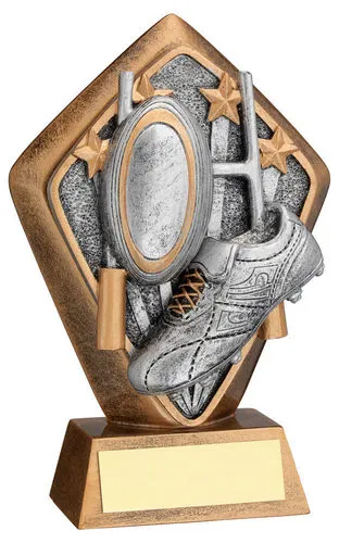 Brz/gold Diamond Holder With Rugby Disc And Plate - 5.25in