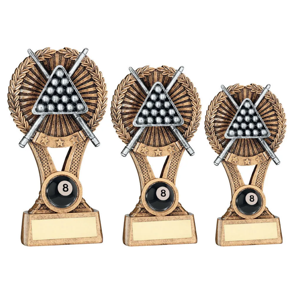 Brz/gold/pew Pool/snooker Round Wreath On V Riser With Plate (1in Cen)