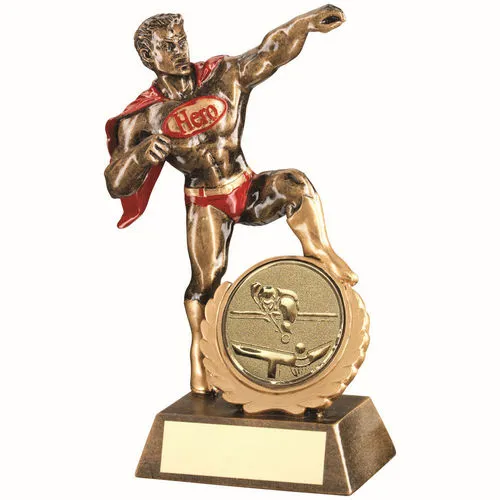 Brz/gold/red Resin Generic Hero Award With Pool/snooker Insert & Plate - 7.25"