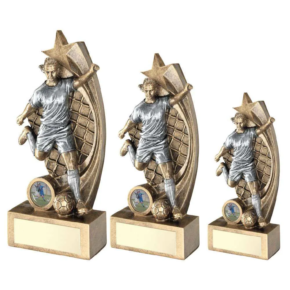 Brz/pew Female Football Figure On Star Net Backing With Plate (1in Cen)