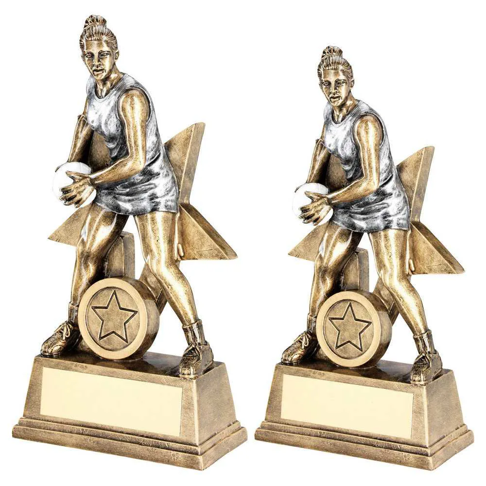 Brz/pew/white Female Netball Figure With Star Back With Plate (1in Cen)