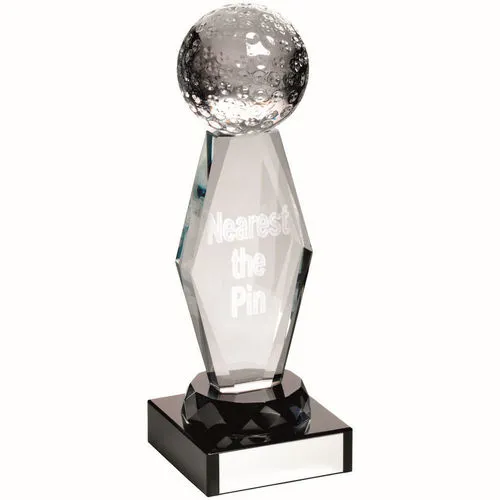 Clear Glass Lasered Golf Column On Black Base N.t.p - 7.25in