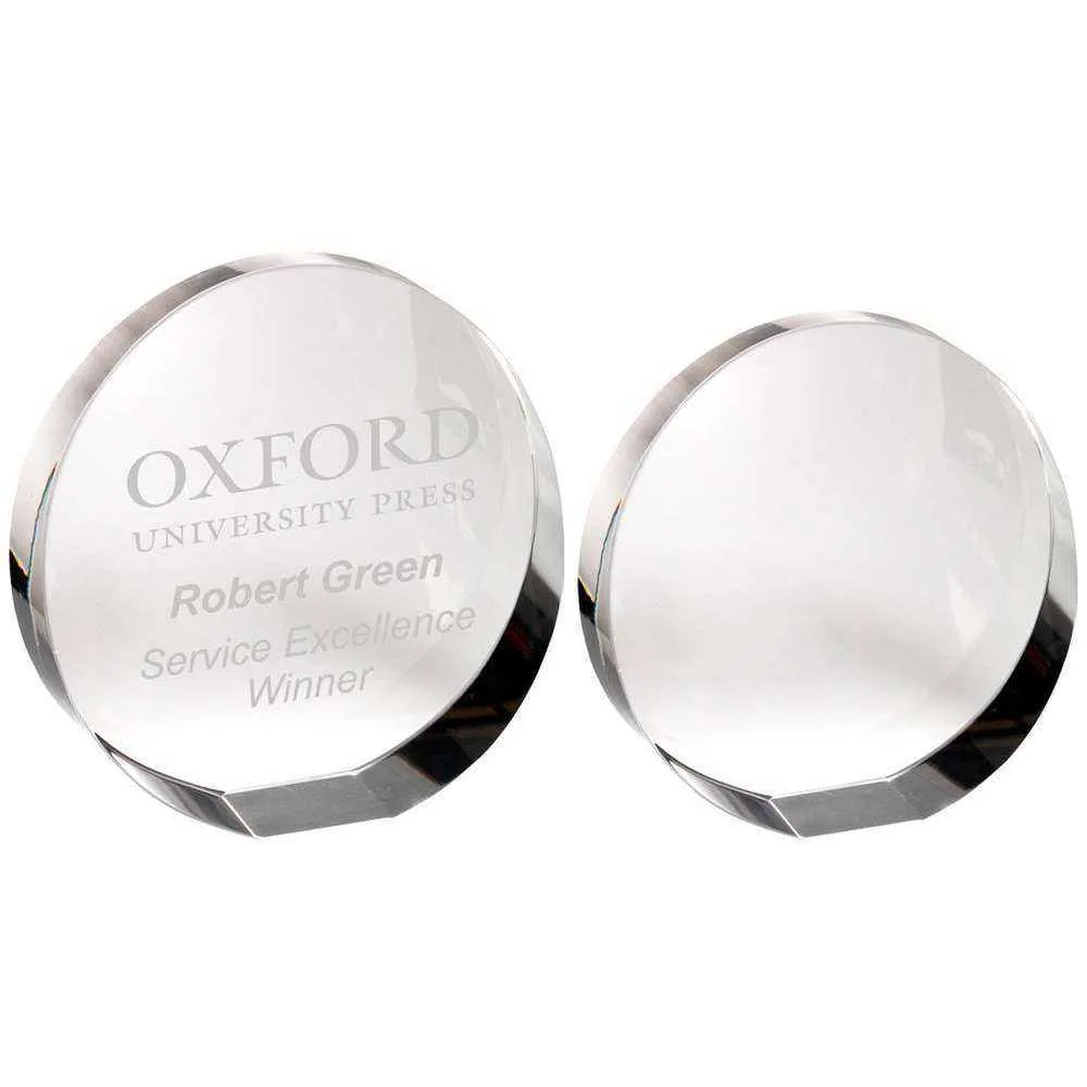 Clear Glass Round Wedged Paperweight (flat Or Standing)