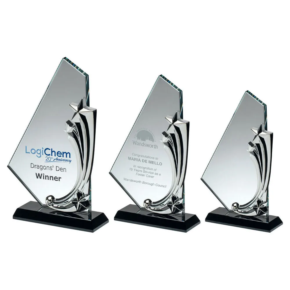 Clear/blk Glass Plaque With Metal Stars (10mm Thick)
