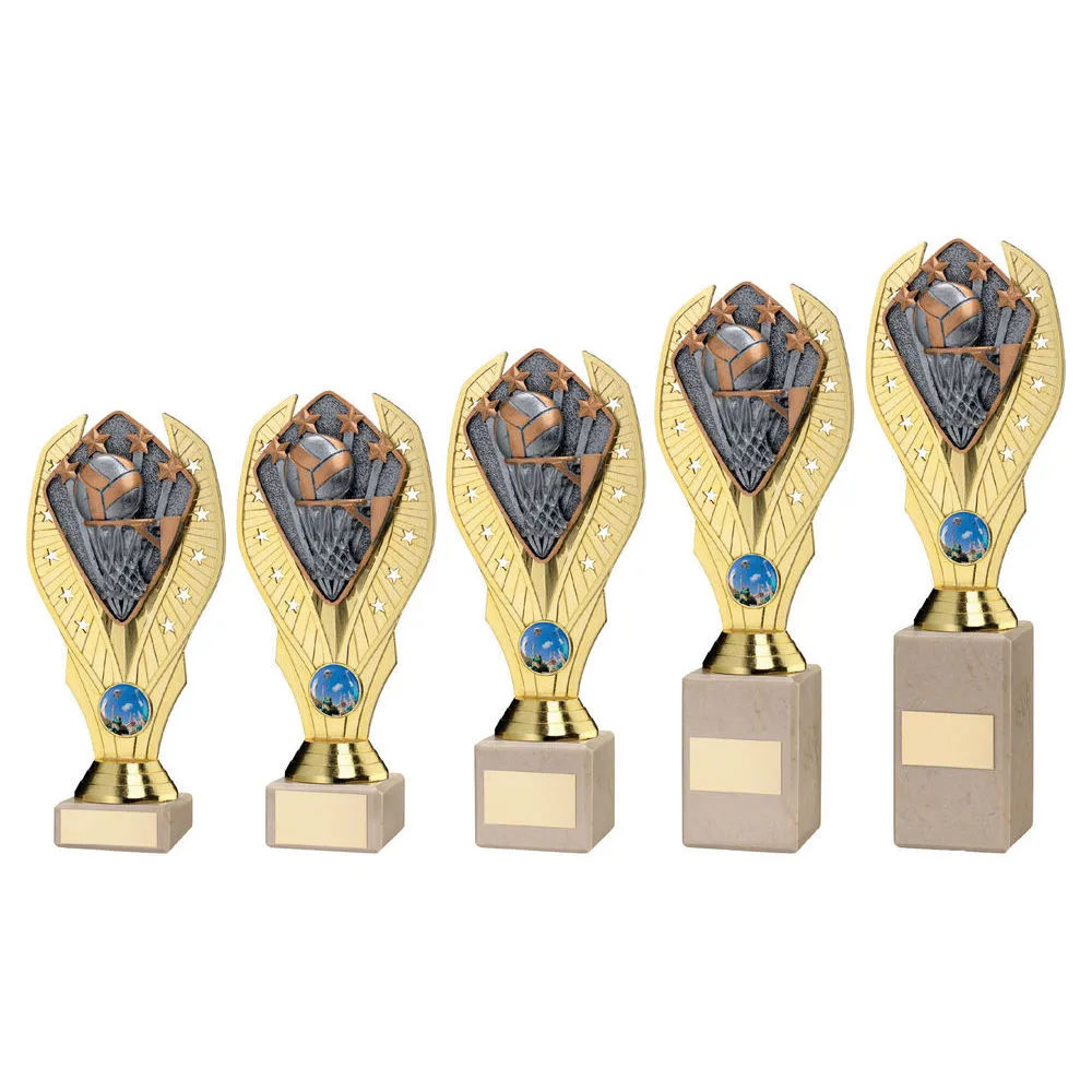 Gold Plastic Holder + Netball Disc On Cream Marble Trophy (1in Cen)