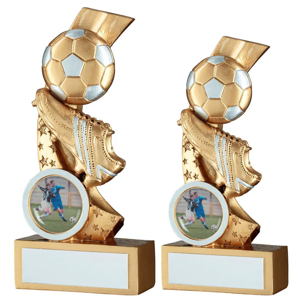 Gold/silver Football And Boot On Multi Star Curve With Plate (1in Centre)
