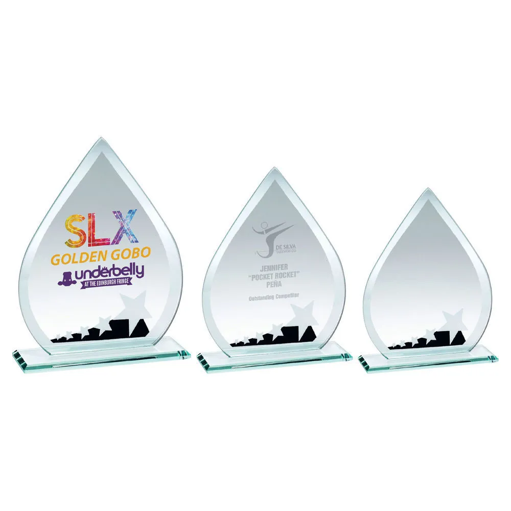 Jade Glass Teardrop With Silver/black Star Design (4mm Thick)
