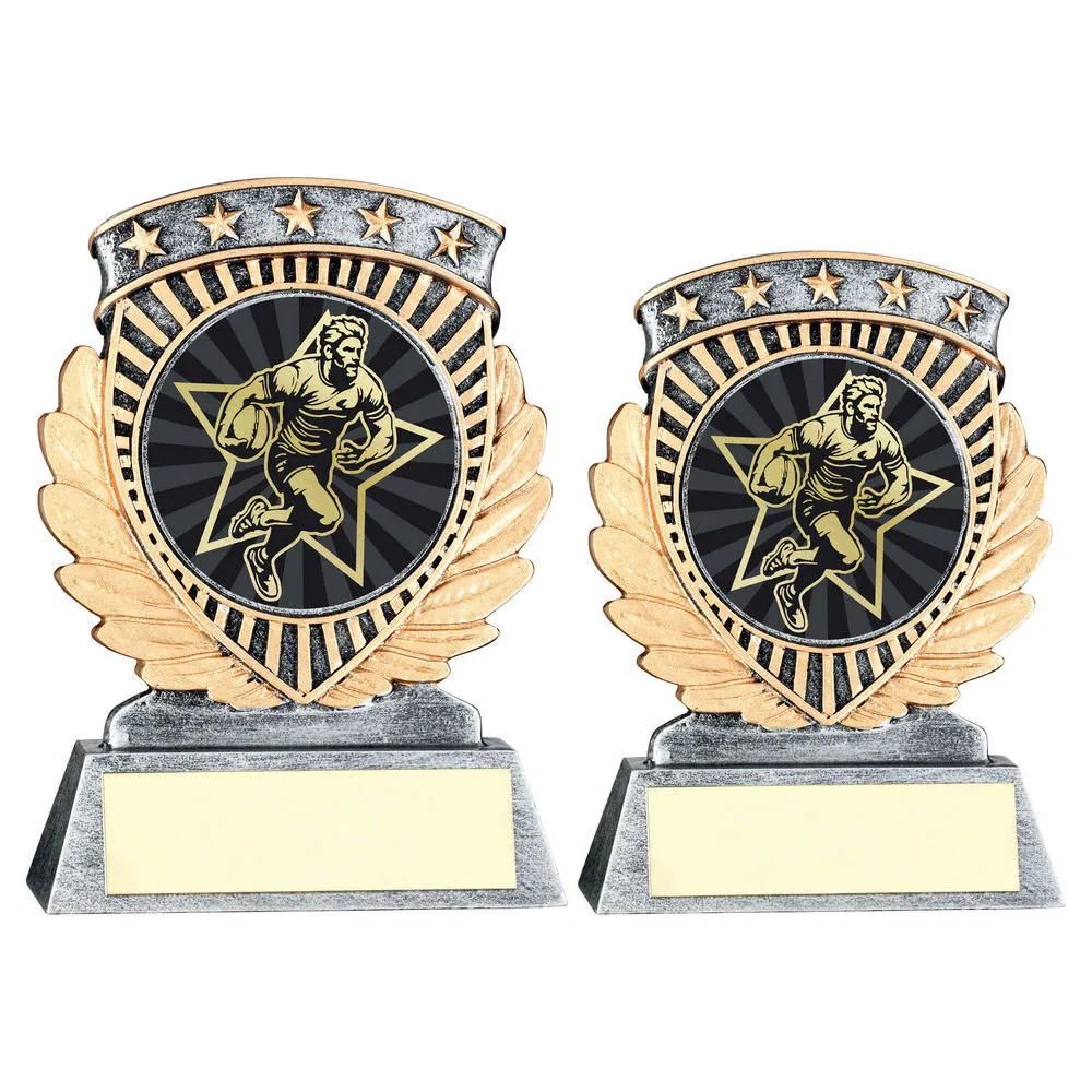 Pew/gold 5 Star Holder With Vinyl Male Rugby Insert & Plate