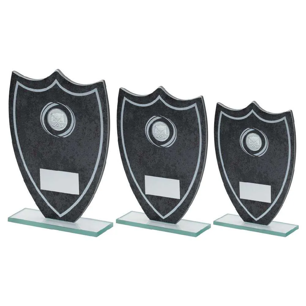 STONE EFFECT GLASS SHIELD WITH HOCKEY CENTRE AND PLATE
