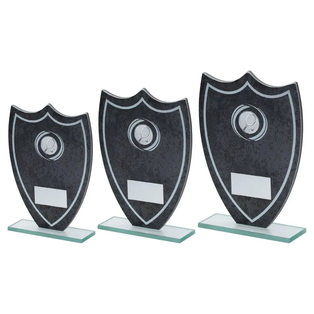 STONE EFFECT GLASS SHIELD WITH TENNIS CENTRE AND PLATE