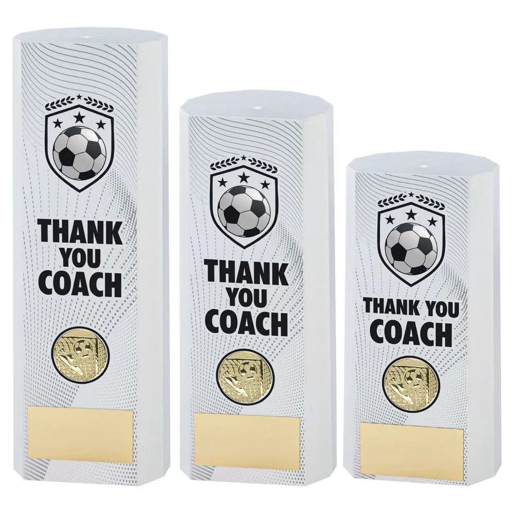 WHITE PLASTIC FILLED COLUMN FOOTBALL THANK YOU COACH (1in CEN)