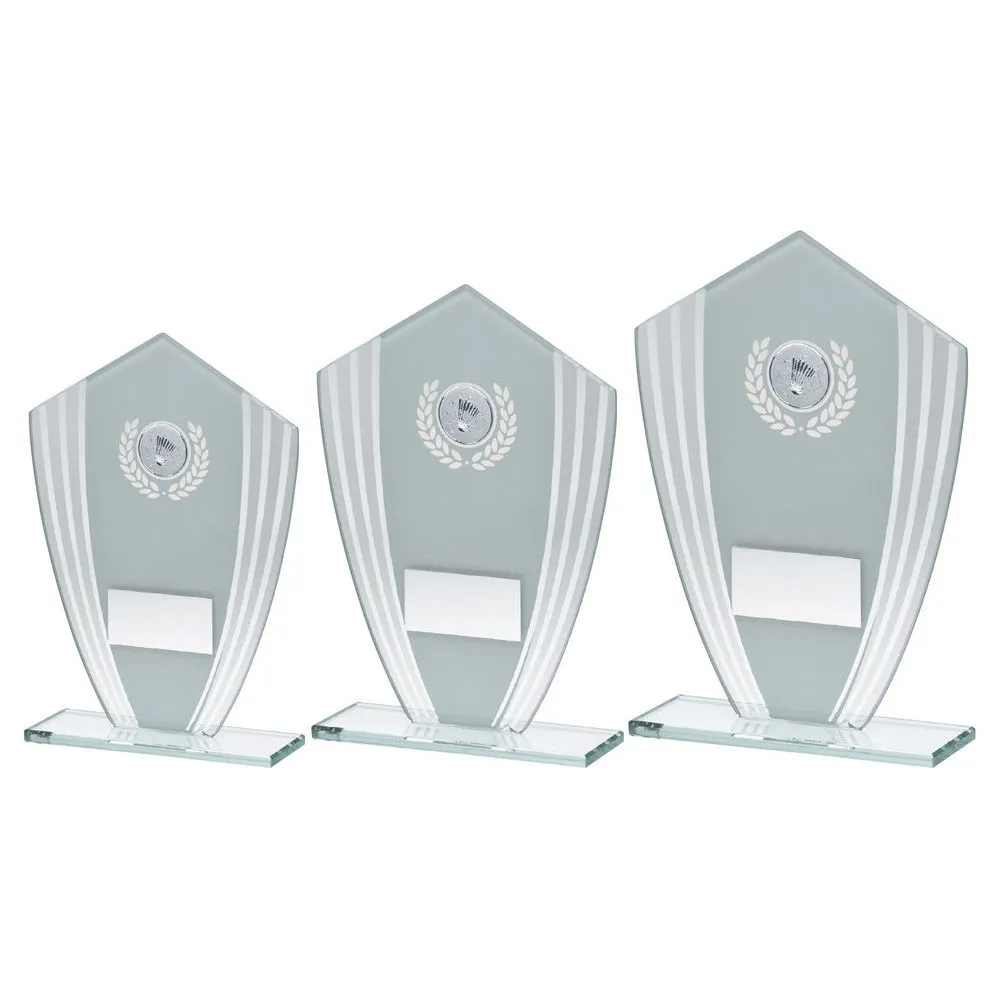 White/silver Glass Shield Plaque With Badminton Insert & Plate