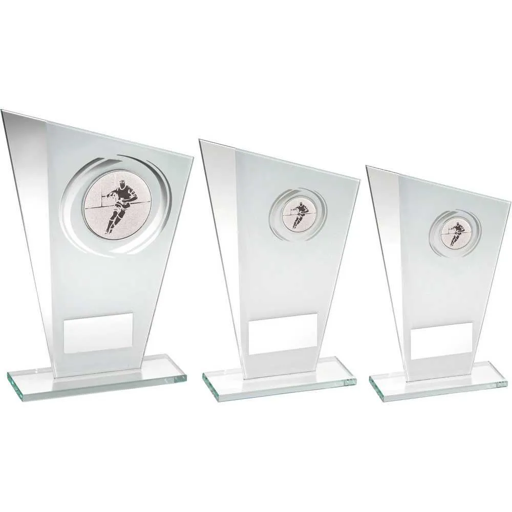 White/silver Printed Glass Plaque With Rugby Insert With Plate