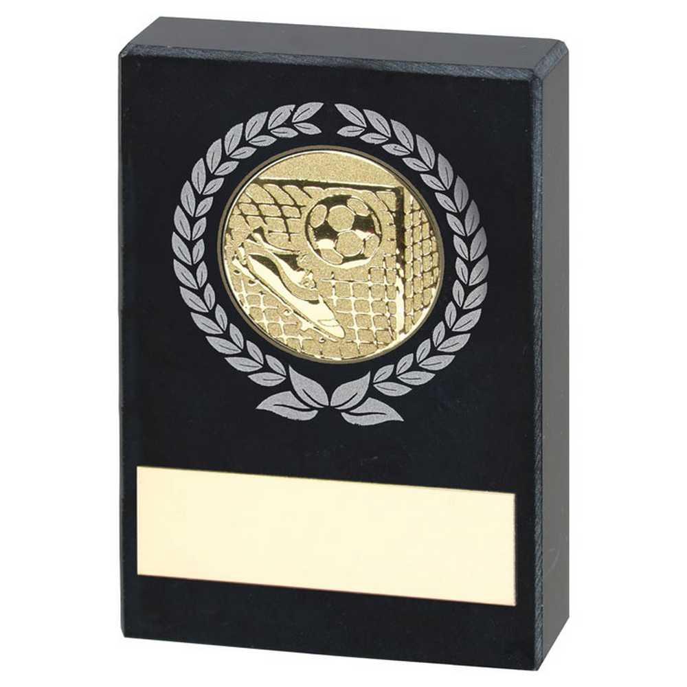 BLACK MARBLE WITH SILVER/GOLD WREATH, FOOTBALL INSERT AND PLATE - 2.5x1.75in. Available in different sizes. Free engraving on the supplied plate.