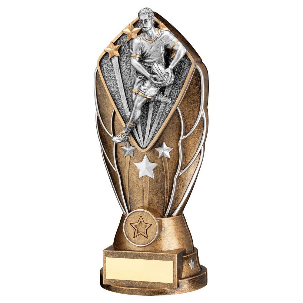 BRZ/SILV DIAMOND COLUMN + 'MALE RUGBY' DISC & PLATE (1in CEN) - 8in. Free engraving on the supplied plate and free colour club logo.