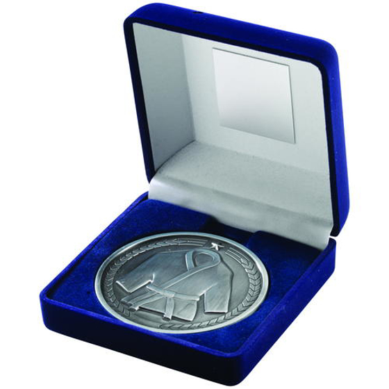 Blue Velvet Box And 70mm Medallion Martial Arts Trophy - Antique Silver 4in (102mm)