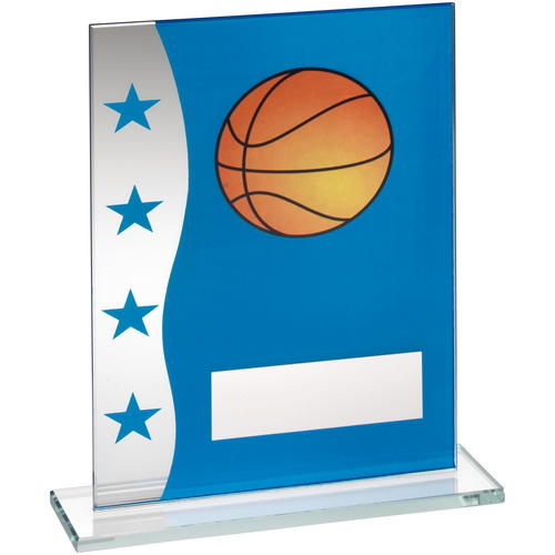 Blue/silver Printed Glass Plaque With Basketball Image Trophy - 7.25in (184mm)