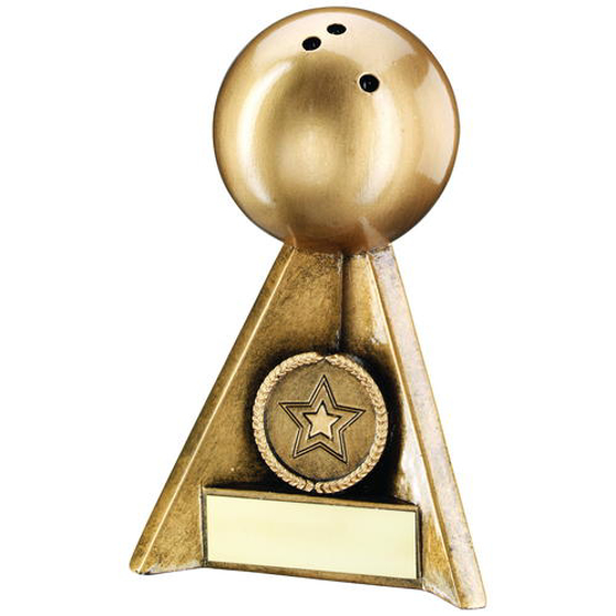 Brz/gold Ten Pin Pyramid Trophy - (1in Centre) 4in (102mm)