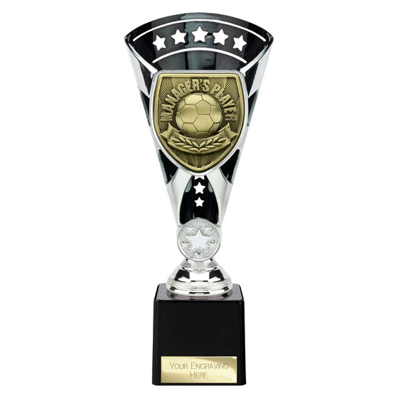 Cobra Star Cup Managers Player Silver & Black 230mm. Free engraving on the supplied plate and free colour club logo.