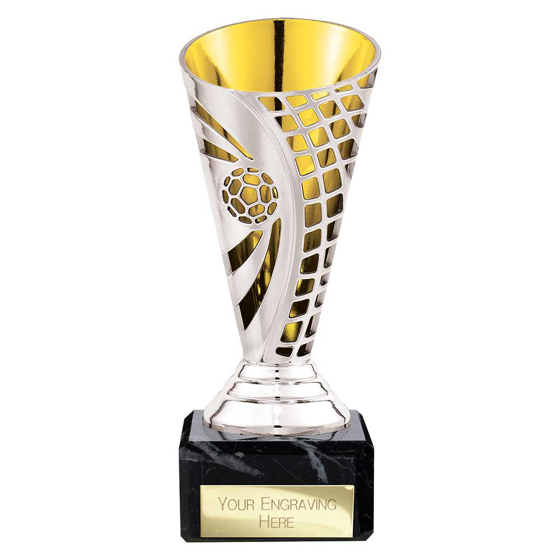 Defender Football Trophy Cup Silver & Gold 150mm