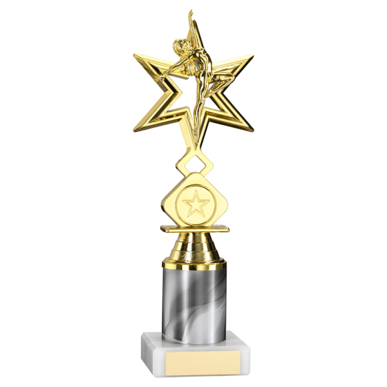 GOLD/WHITE 'DANCE/GYM' STAR FIGURE ASSEMBLED ON MARBLE (1" CEN/3" TUBE) - 10in. Available in different sizes. Free engraving on the supplied plate.