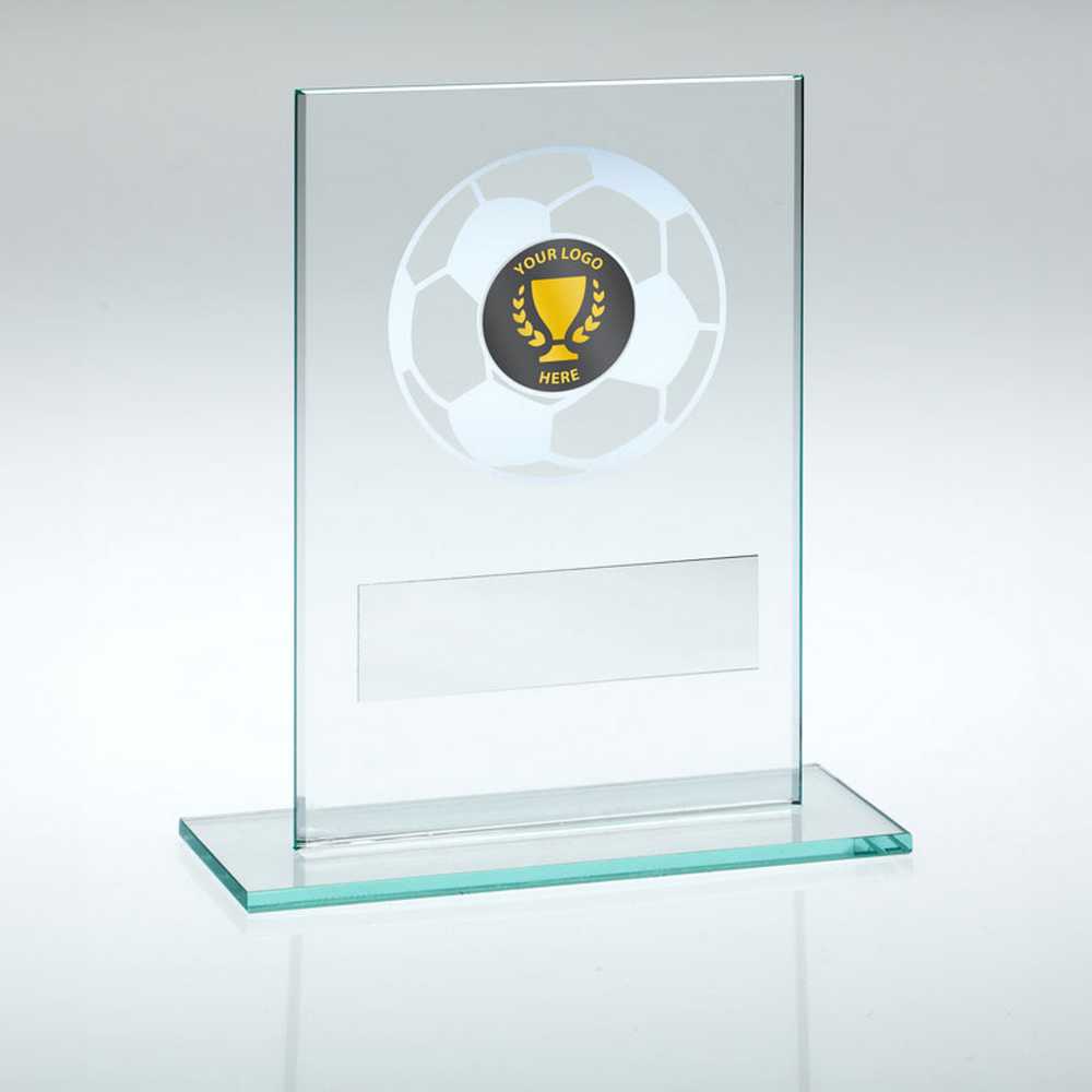JADE GLASS WITH SILVER FOOTBALL AND PLATE (1in CENTRE) - 4.5in. Free engraving on the supplied plate and free colour club logo.