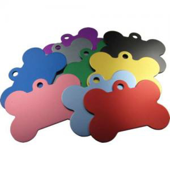 Pet Tag Bone with Tab 50mm. All our high-quality Pet Tags have a superior finish, no more bare aluminium edges. Manufactured using Alcoa aluminium, anodised to 7 microns including the edges. Available in different colours. Free 3 line engraving, usually pet name, postcode and telephone number. Contact us for different engraving requirements, we will be happy to help.
