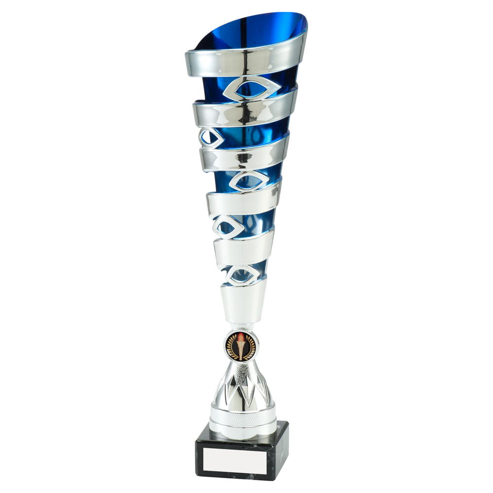 Silver/blue Plastic Spiral & Eyelet Trophy (1in Centre) - 15.5in (394mm)